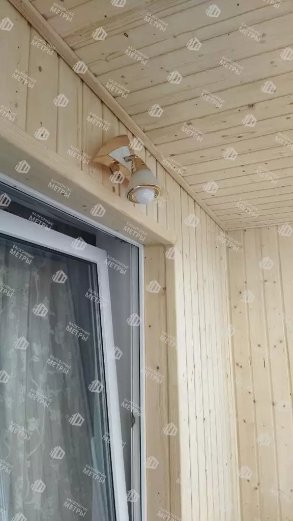 Реализована работы по отделке балкон  в многоквартирном доме. Отделка стен и потолка выполнена из вагонки, пол ламинат. Выведено и разведено по балкону электричество. Установлен  настенный светильник. Материал предоставлялся компанией согласно пожеланиям заказчика.